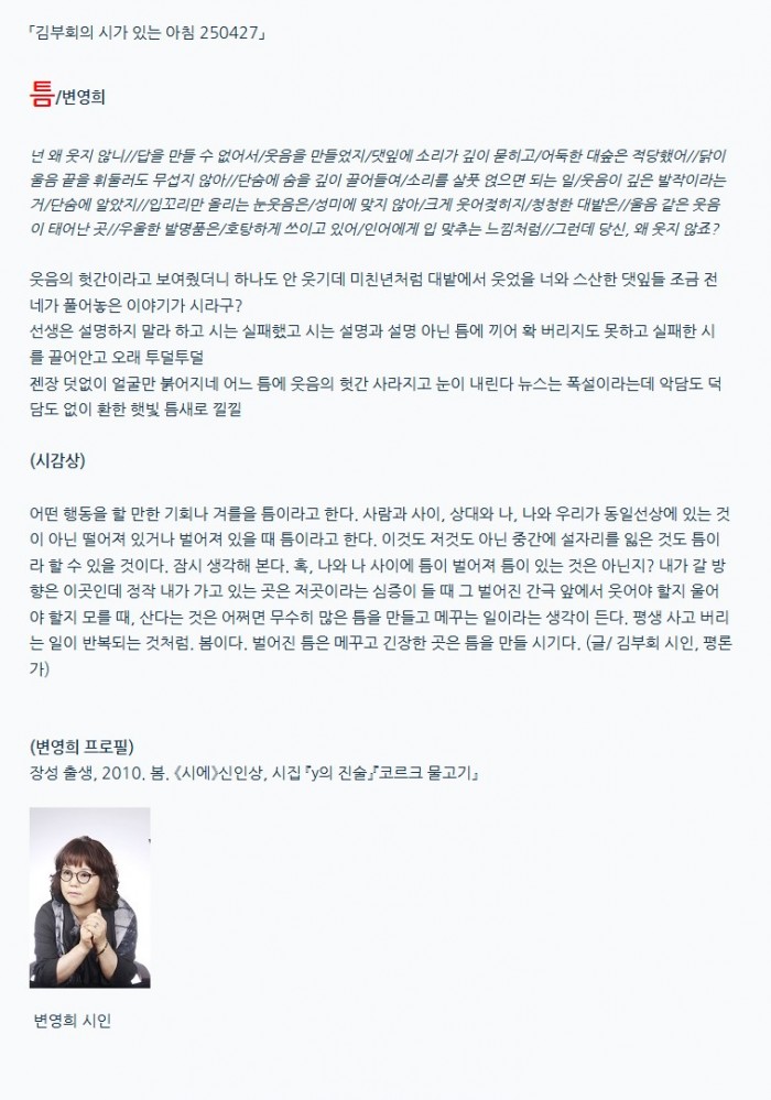틈/변영희 > 내가 읽은 시