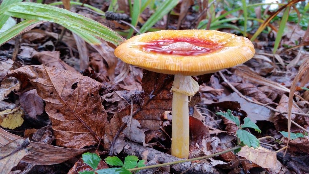 노란젖버섯은 말 그대로 갓을 상처내면 그 부위에서 젖이 뚝뚝 떨어지고 색이 밝은 노랑이에요