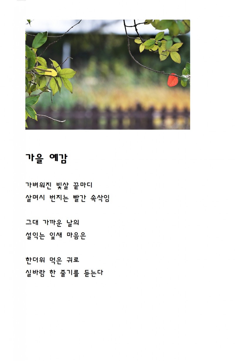 가을 예감 페이지 정보 작성자 晩霞 쪽지보내기 메일보내기 자기소개 아이디로 검색 전체게시물 쪽지보내기 메일보내기 자기소개 아이디로 검색 전체게시물 댓글 0건 조회 293회 작성일 25-09-01 09:20 본문 목록 댓글목록 댓글목록 등록된 댓글이 없습니다.