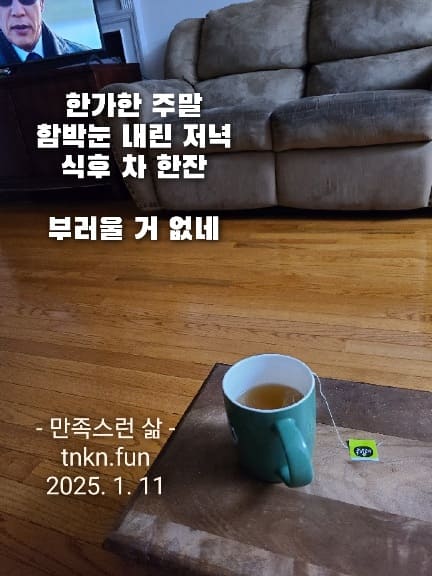 만족스런 삶 페이지 정보 작성자 시인삼촌 쪽지보내기 메일보내기 홈페이지 자기소개 아이디로 검색 전체게시물 쪽지보내기 메일보내기 홈페이지 자기소개 아이디로 검색 전체게시물 댓글 0건 조회 248회 작성일 25-01-12 10:22 본문 억만금 있어도 맘 편하지 못하면 무슨 소용 차 한잔에 몸 녹이니 마음까지 편하다tnkn.fun 테네시 한인 네트워크 목록 댓글목록 댓글목록 등록된 댓글이 없습니다.