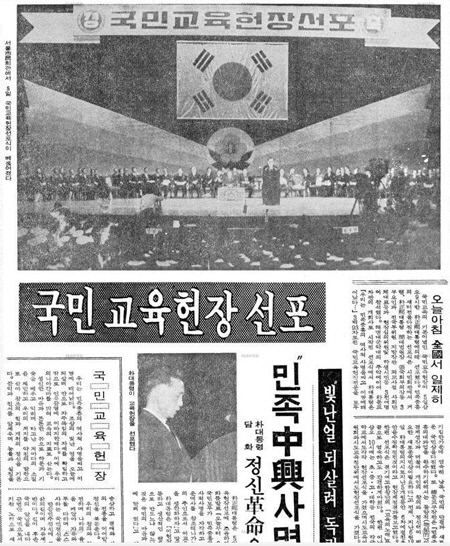 사진은 제가 태어나던 해, 국민교육헌장 선포 기사입니다.