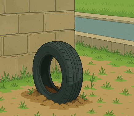 길가 한켠에 낡은 타이어 하나