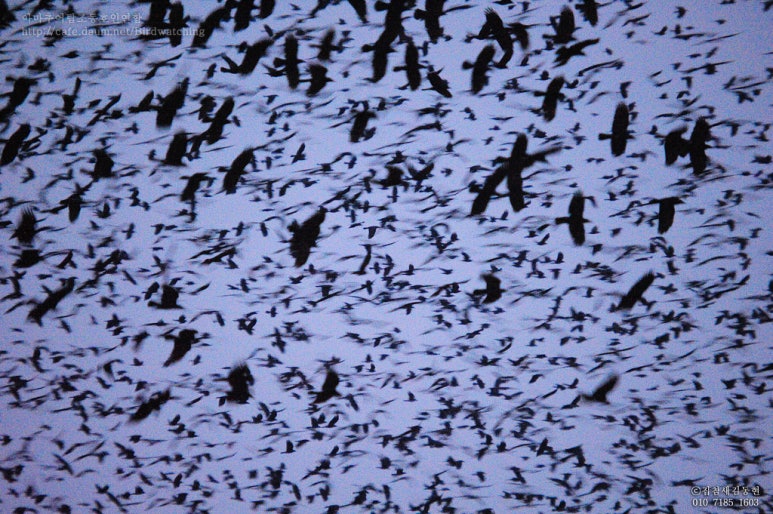 전선에 까마귀 떼을 본 적 있습니다
