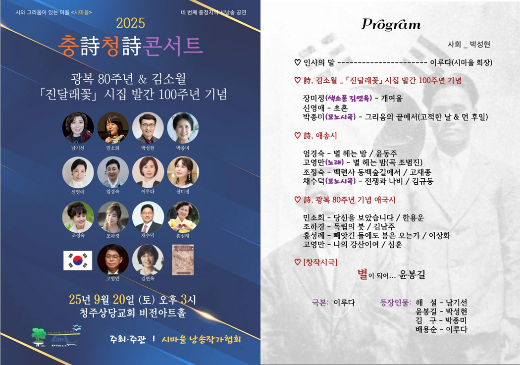 광복80주년 기념과 김소월 시인의 "진달래꽃" 시집 발간 100주년 기념을 주제로한 감동의 공연이 펼쳐졌습니다.