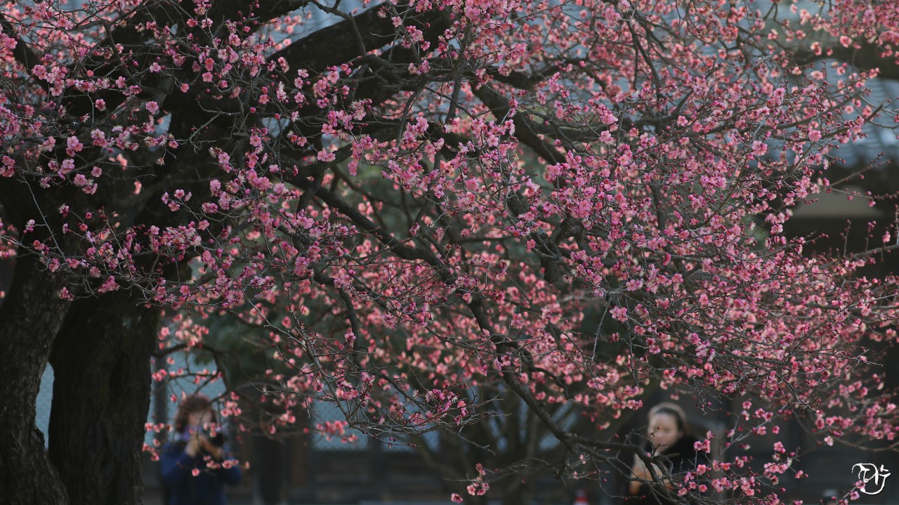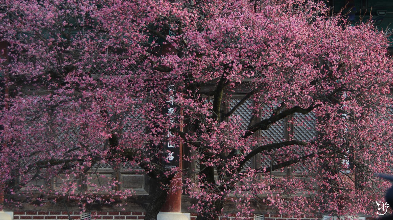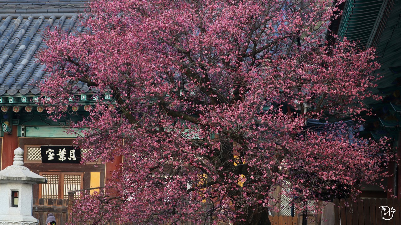 오래된 사찰과 고목의 매화꽃이 어우러지는 모습에 매화꽃향기가