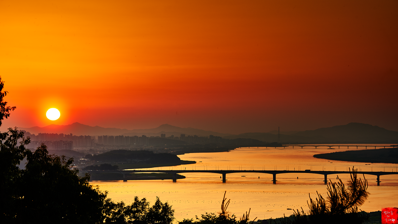 사시는 일산과 바로 옆의 고양시는 일몰사진 속의 우측이고 보이는 것이 행주대교입니다.
