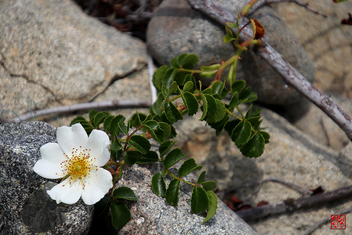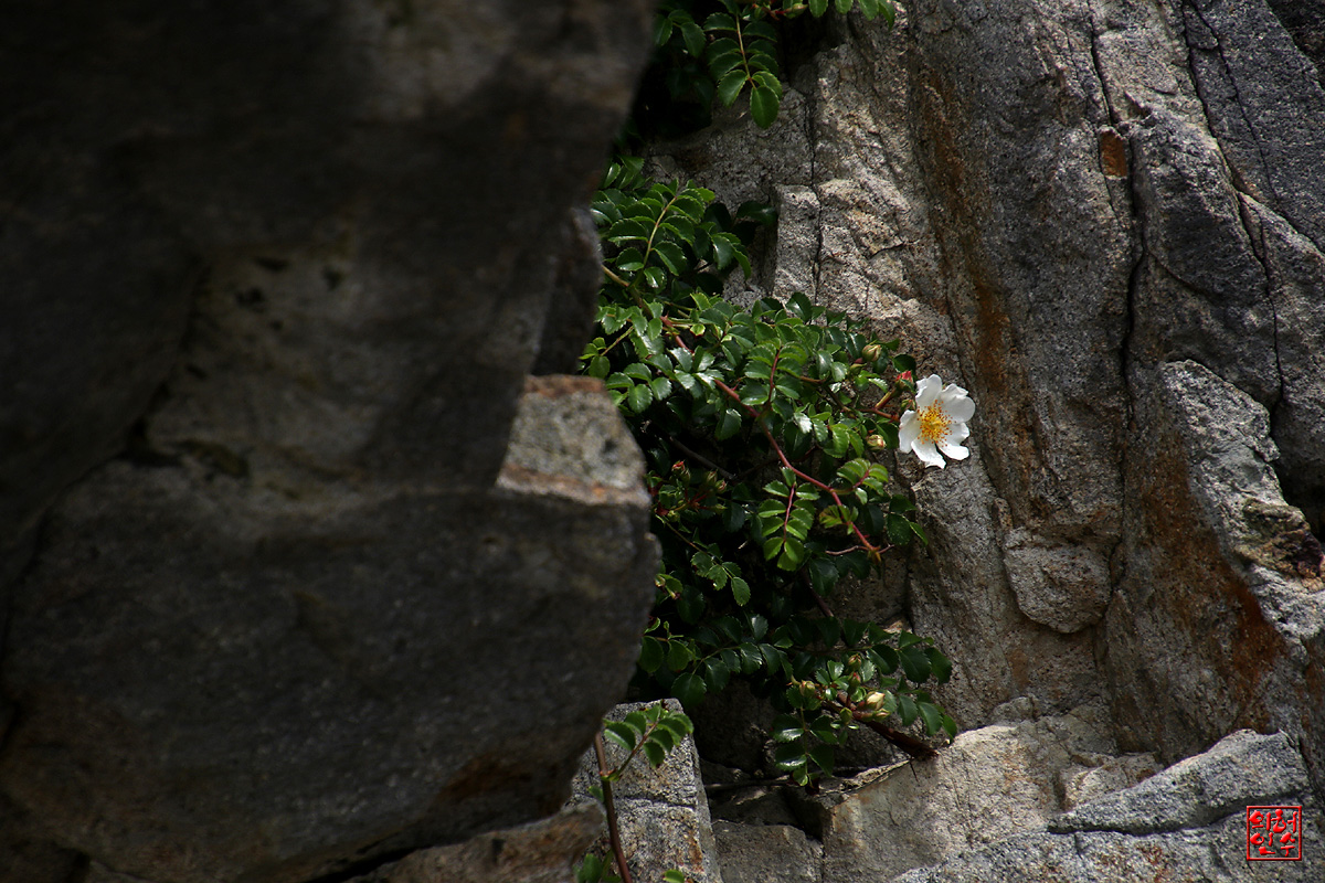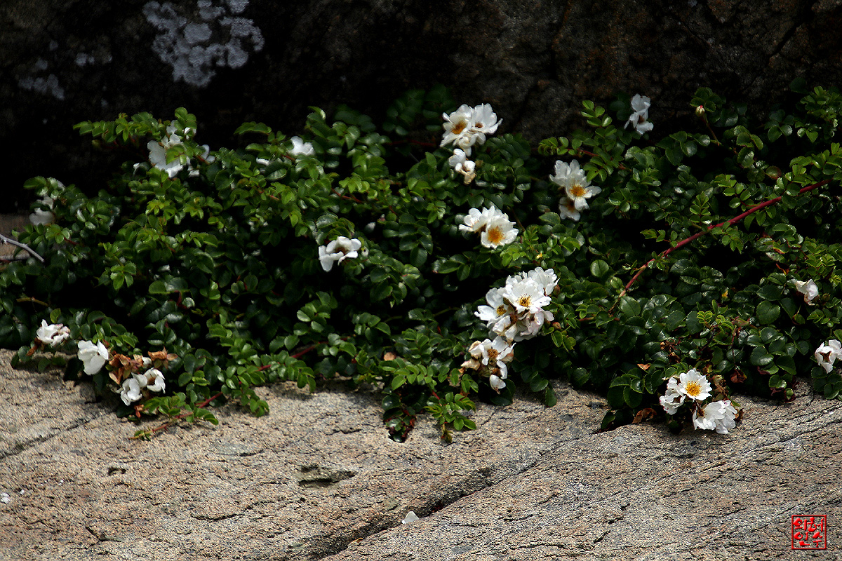 바위틈에 돋아나 꽃피운 貌濕이,"찔레꽃"과 恰似합니다`요..