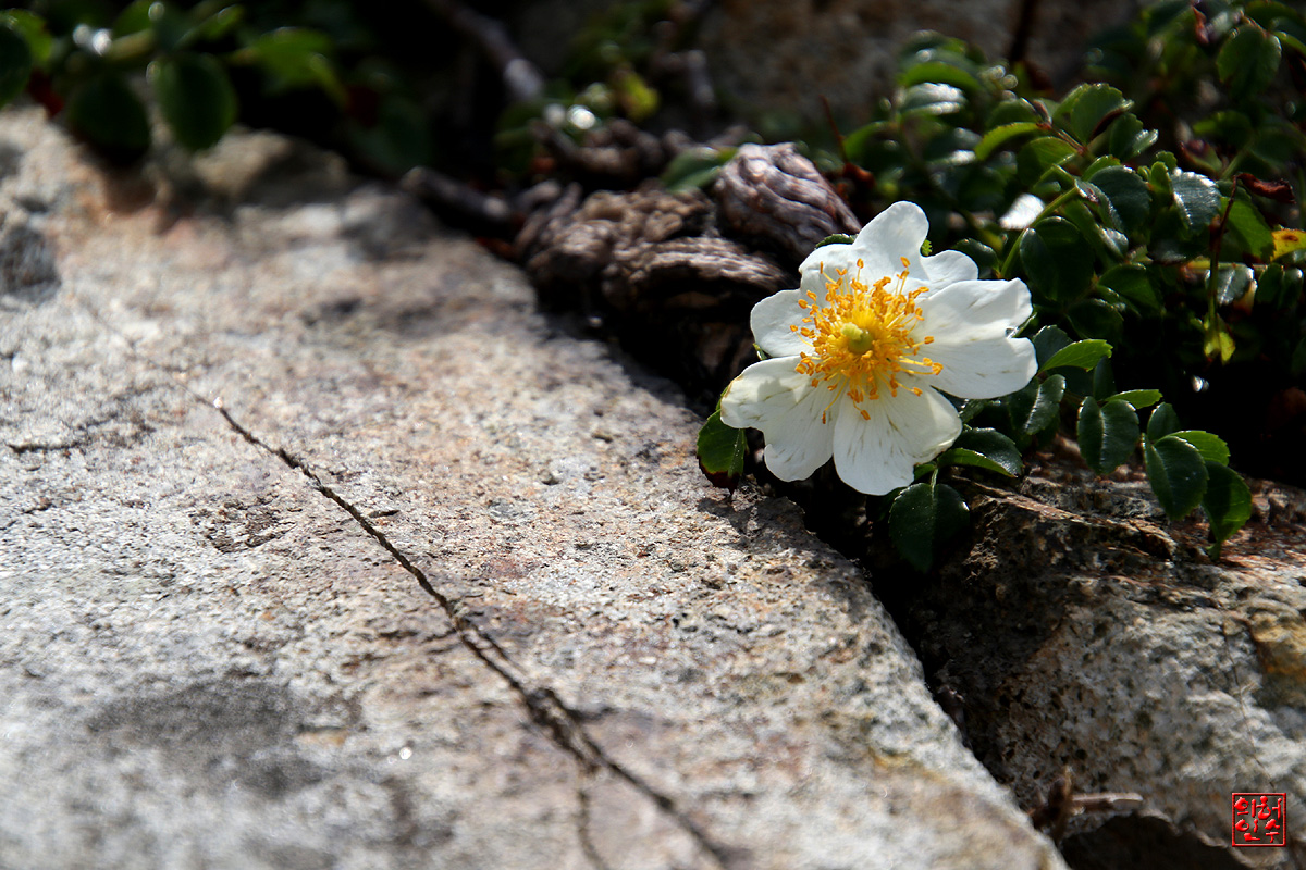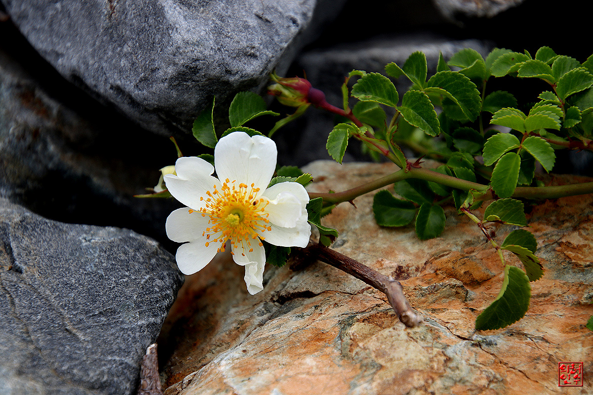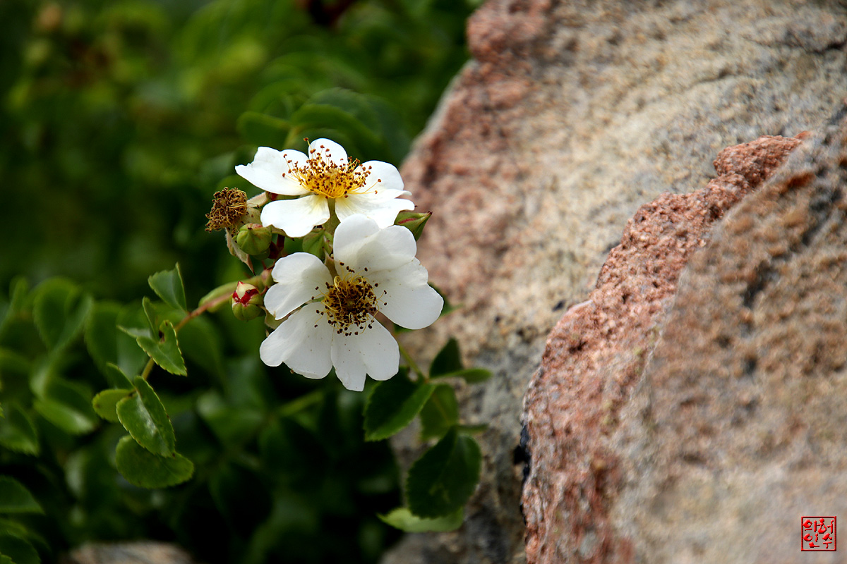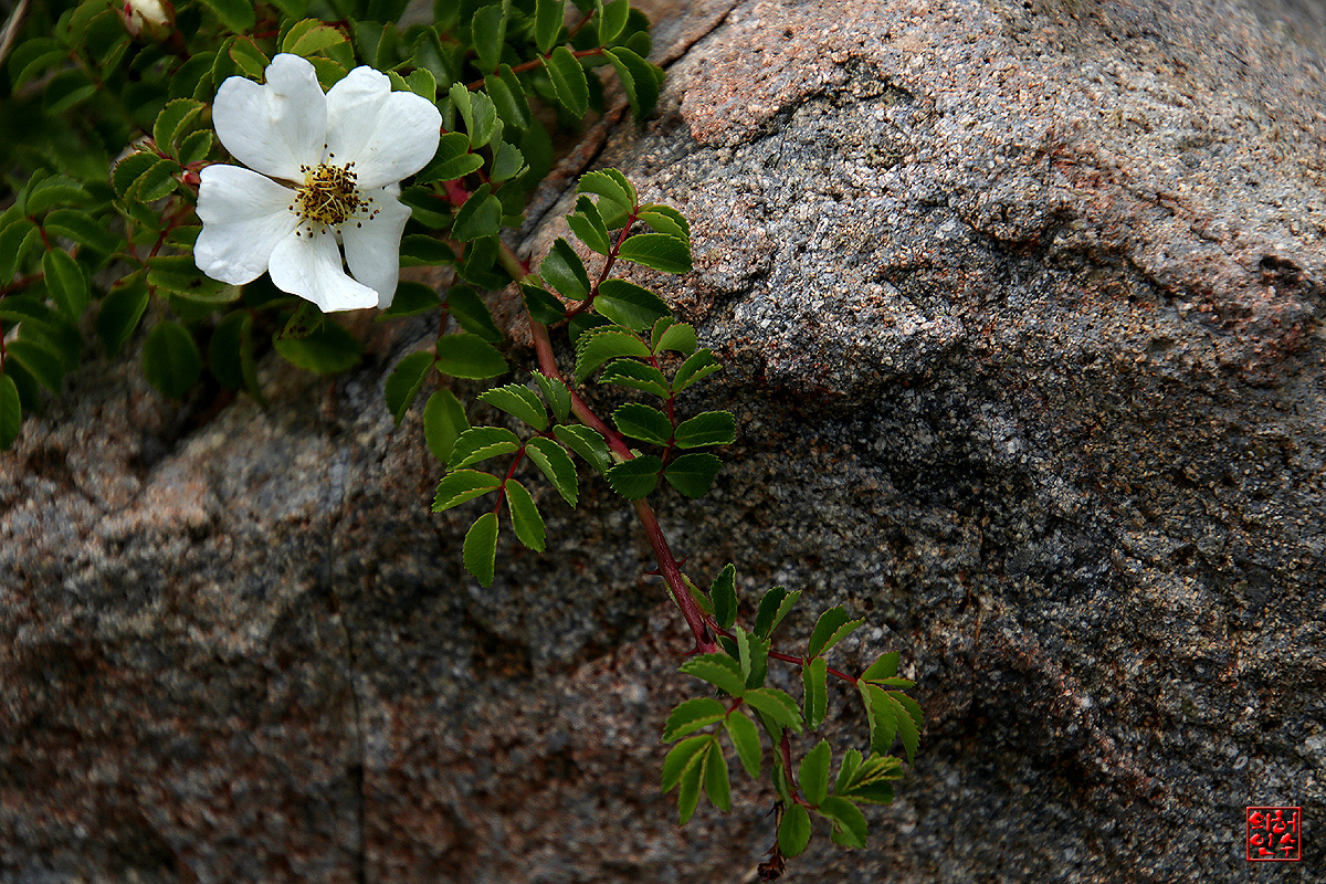 바위틈에 돋아나 꽃피운 貌濕이,"찔레꽃"과 恰似합니다`요..
