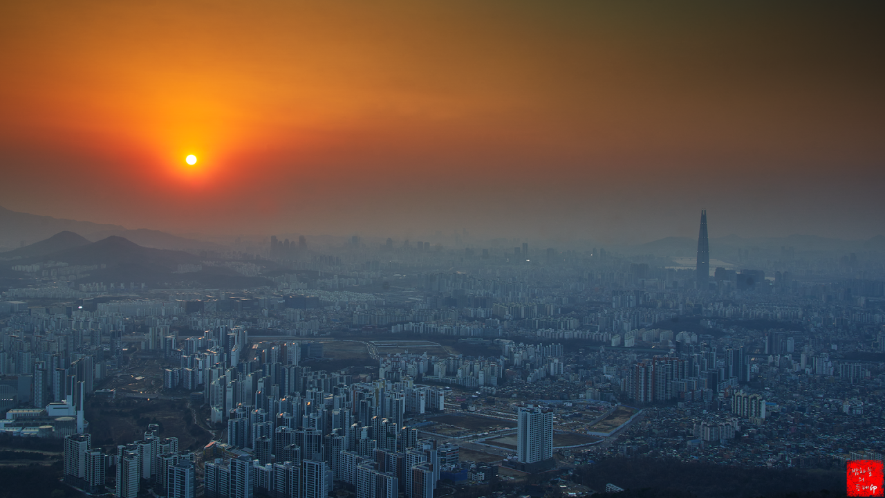 1년에 5월 중순과 7월 중순에 두 번 롯데타워 위로 해가 떨어지는 일몰을 만나는데,