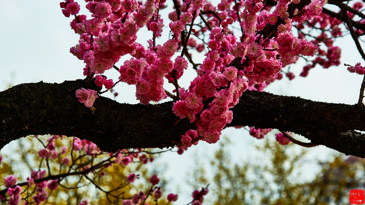 승화루의 만첩홍매는 80% 정도인 것 같고요.