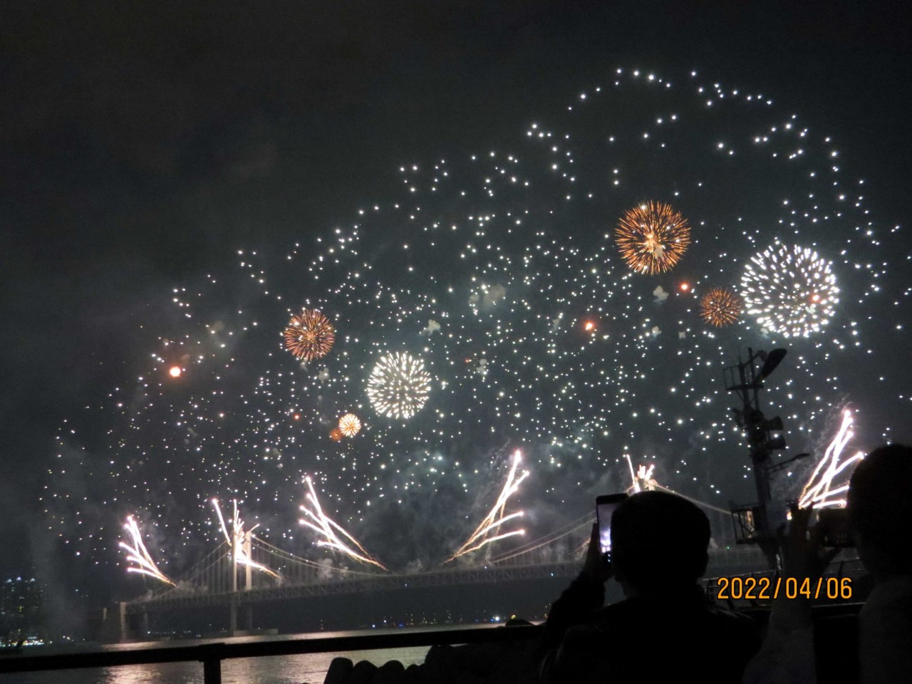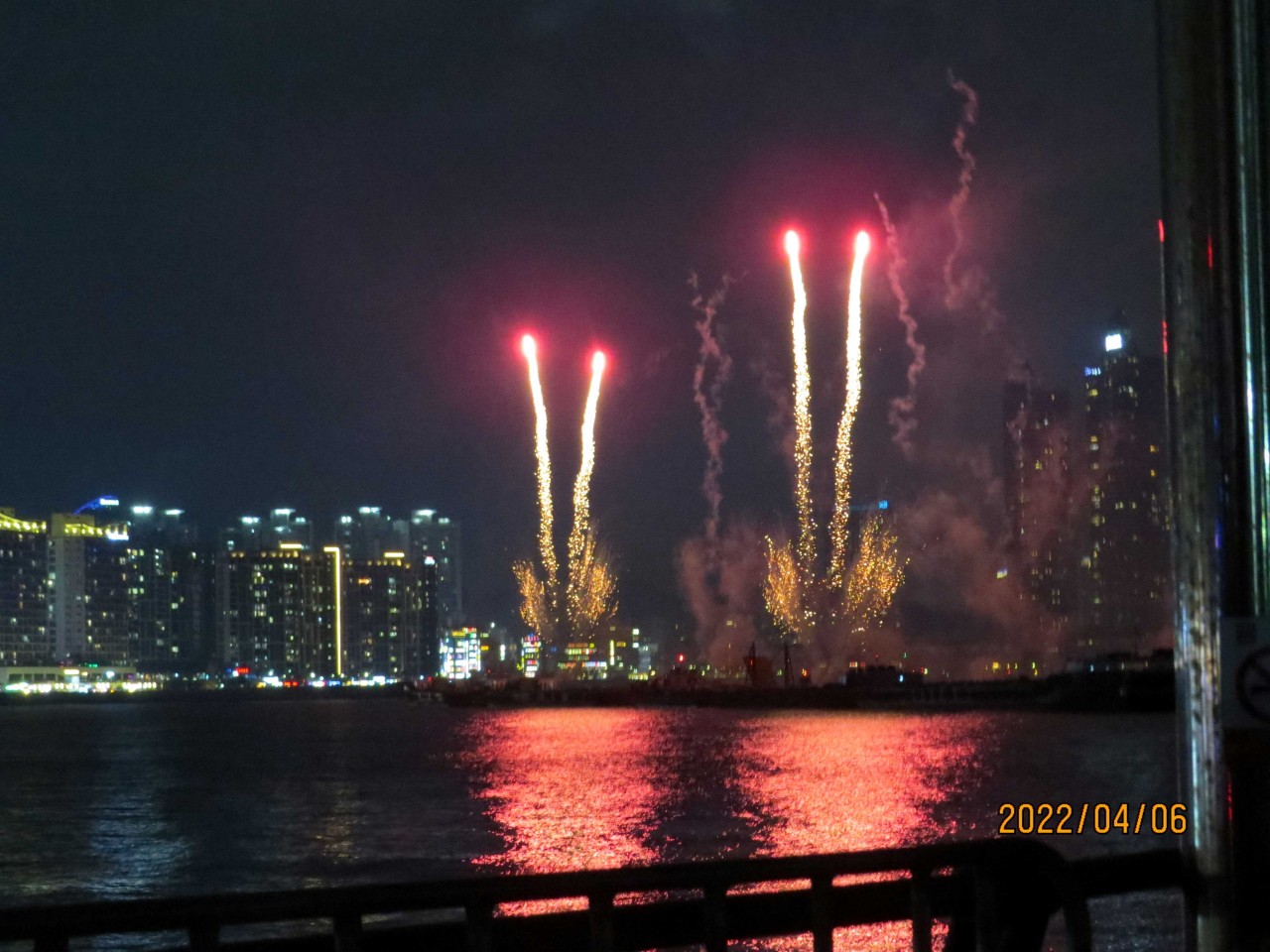 부산은 날씨가 괜찮은지 화려한 불꽃놀이를 하는 것을 보게 됩니다.