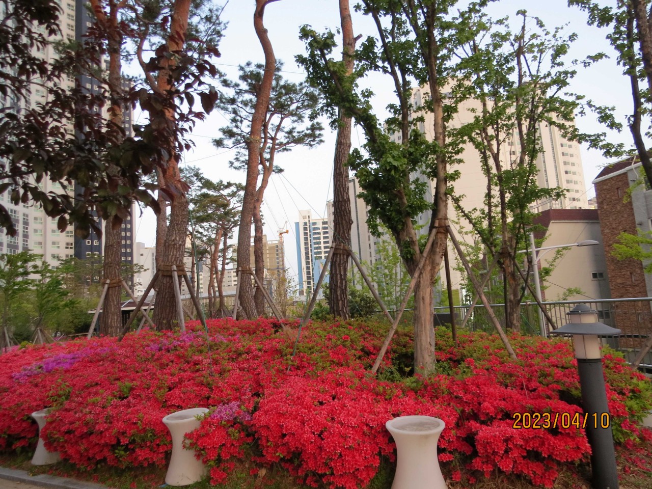 아파트 단지를 도시면서 아기자기한 꽃들을