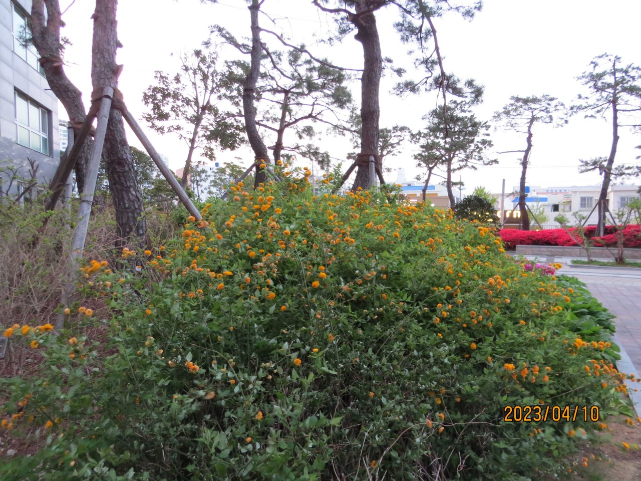 도로나 아파트 주변의 화단에 보이는 꽃들의 모습을 담으신 것 같고요.