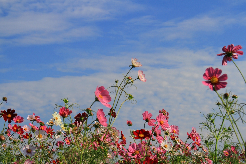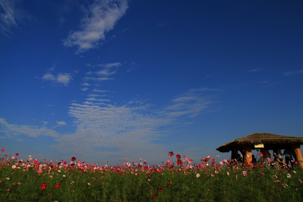 파란 하늘 아래 한들거리는 코스모스들 넘 예쁘네요~