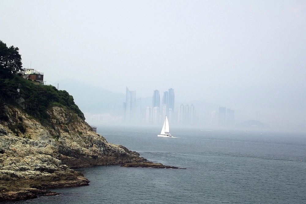 멀리 광안대교와 명품아파트가 안개도시같네요..