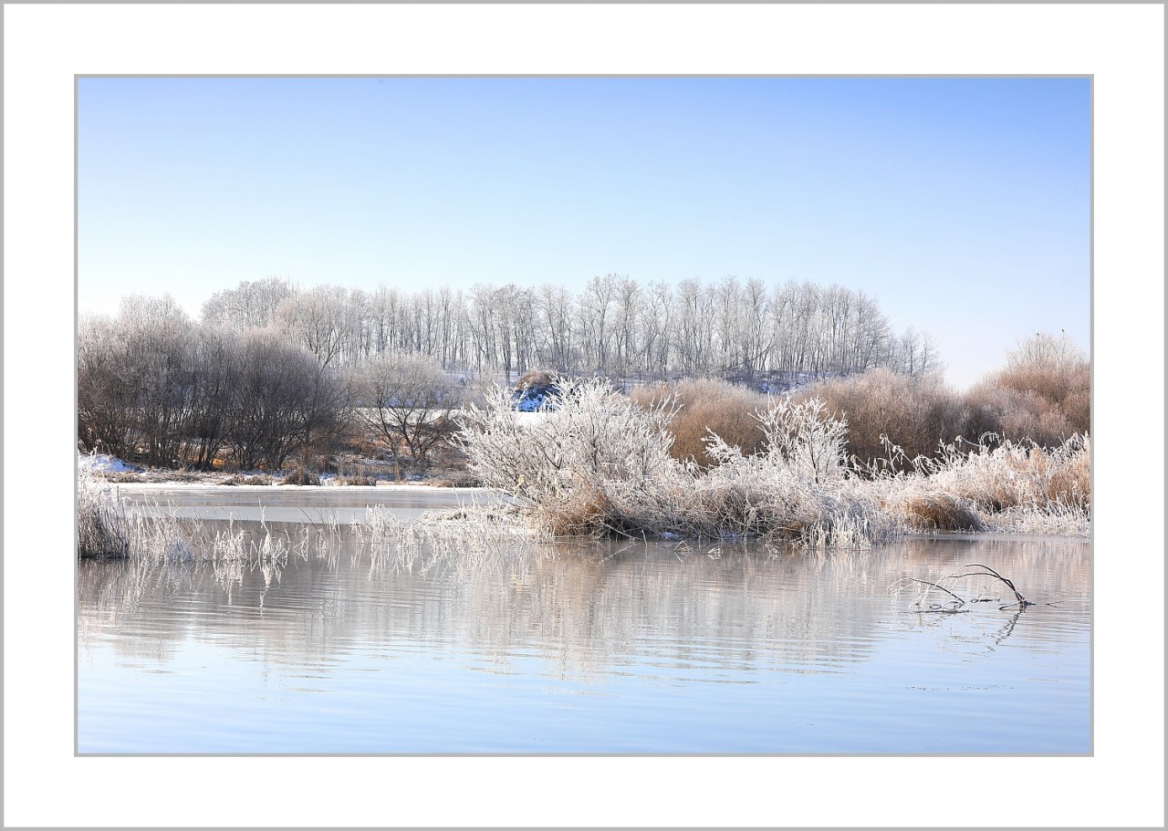 강가에 하얗게 피어난 상고대, 정말 이채롭네요