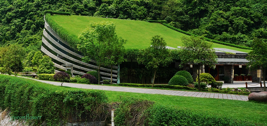 건물 옥상에 잔디를 심어서 환경적으로도 좋은 것 같습니다