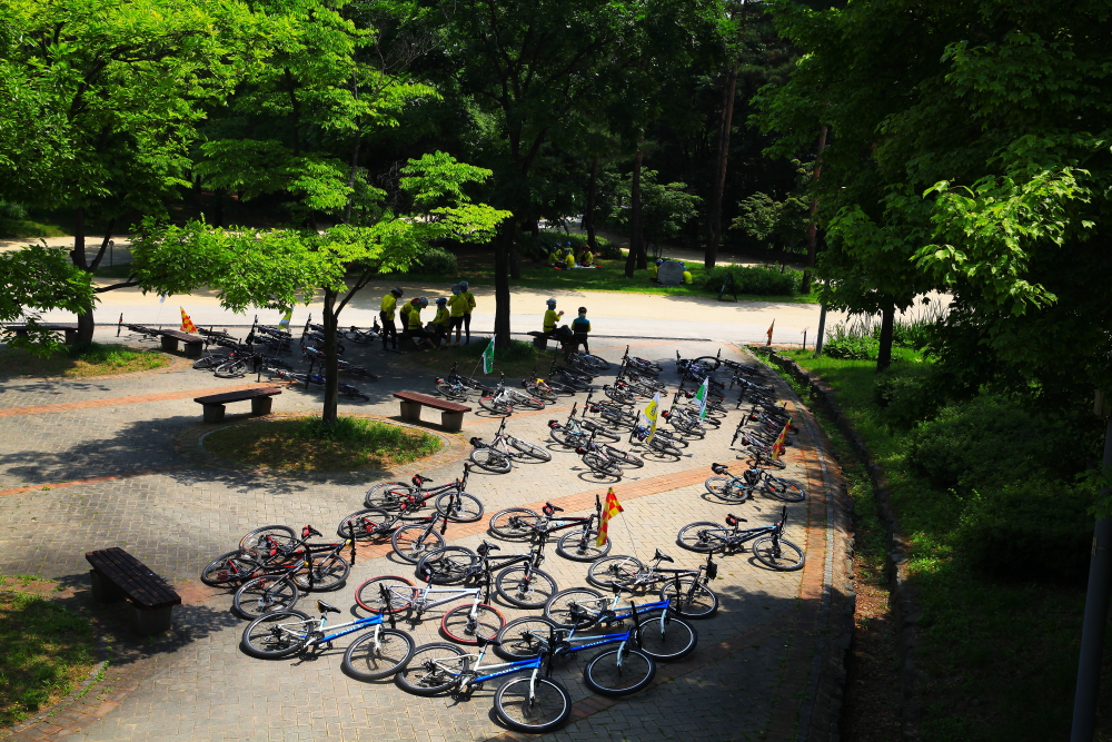 자전거가 수십대 눕혀져있는 풍경 특별한데요~