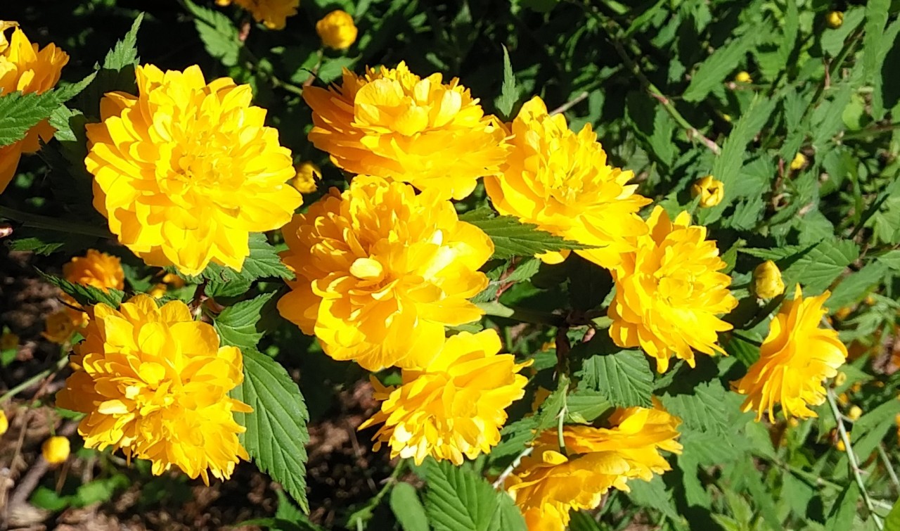 겹꽃황매화는 보통 죽단화라고 부르지요.