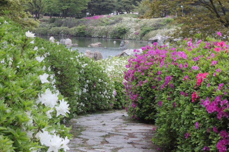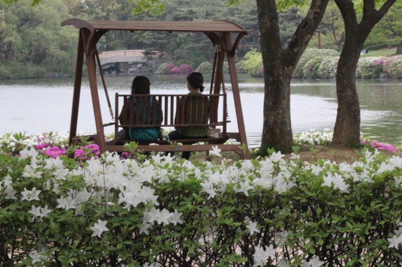 많은 꽃으로 둘러싸인 호수 공원에선 시간 가는 줄 모를 듯...