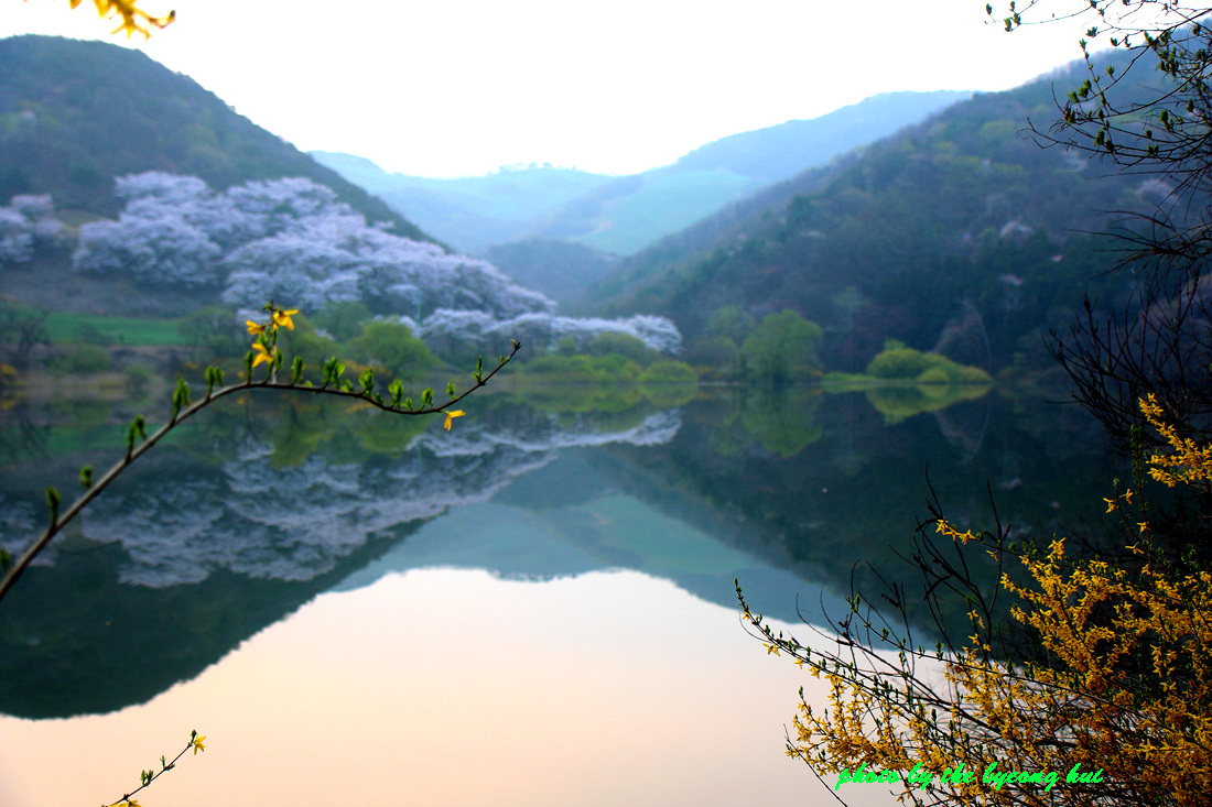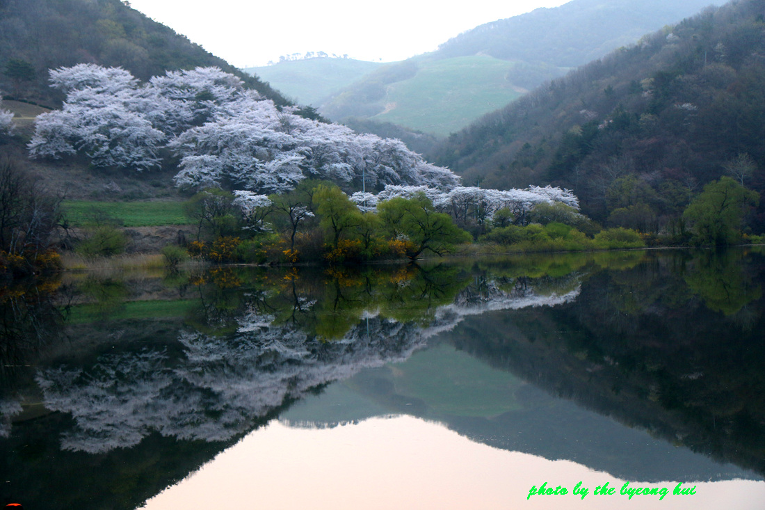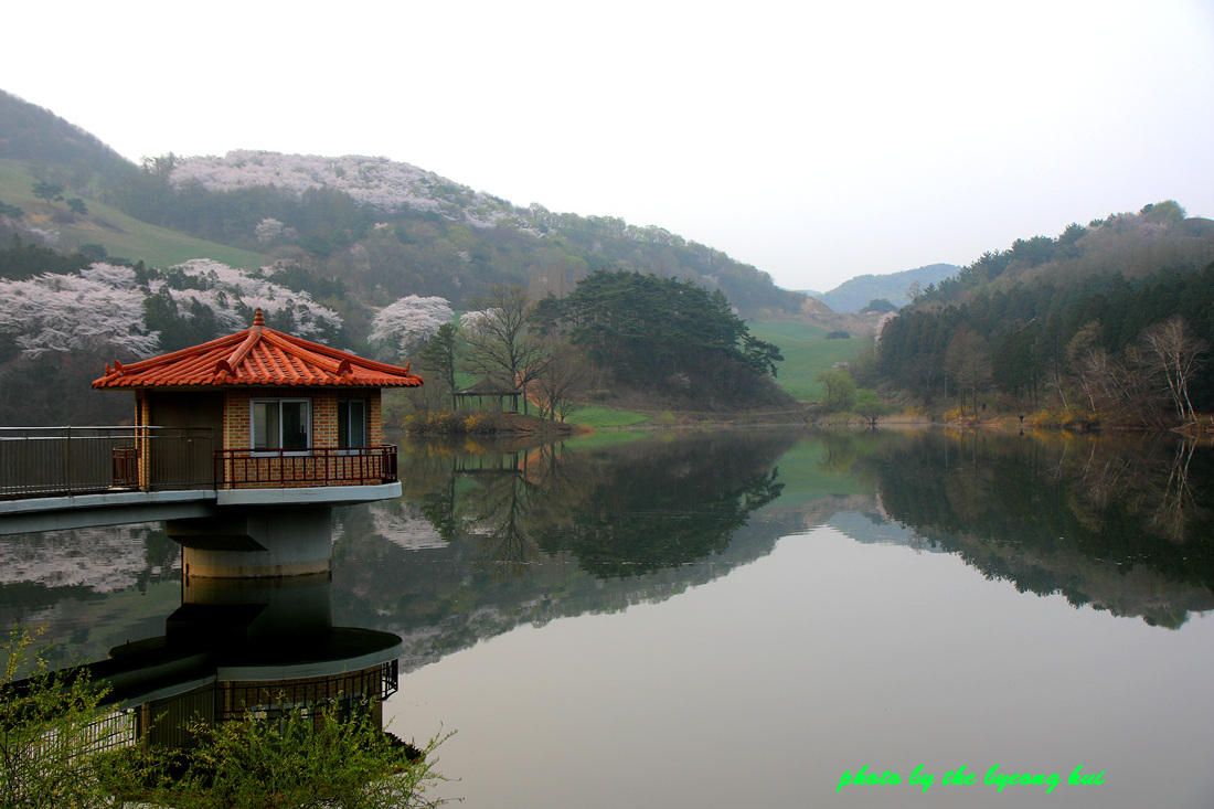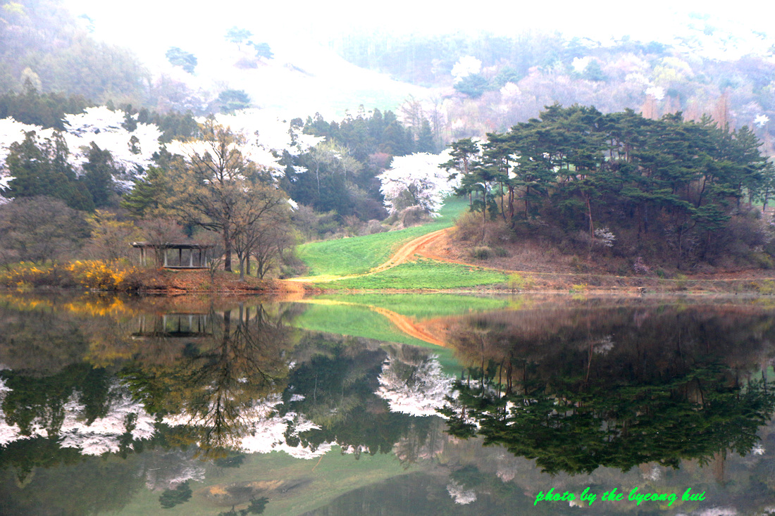 아름다운 반영입니다 벚꽃도 한창입니다 곱습니다