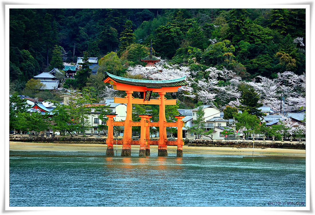 울창한 초록숲과 연분홍 꽃나무들과 일본 특유의 집들과 또.. 조화로움이 멋지네요.