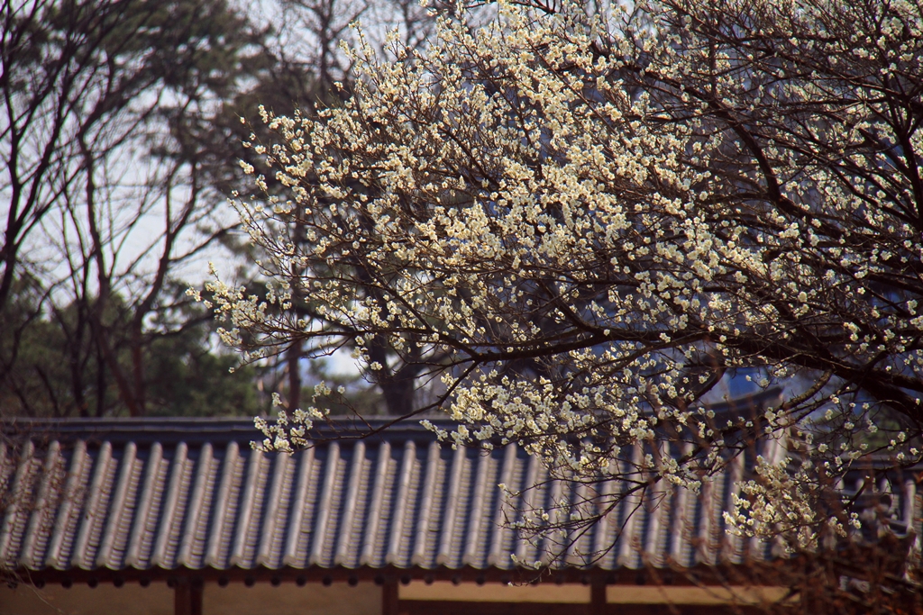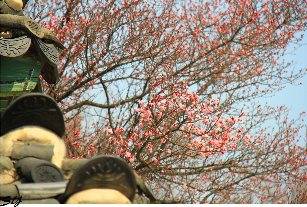 홍매화 백매화 궁의 기와와 처마가 정말