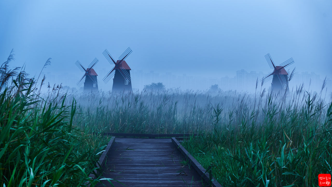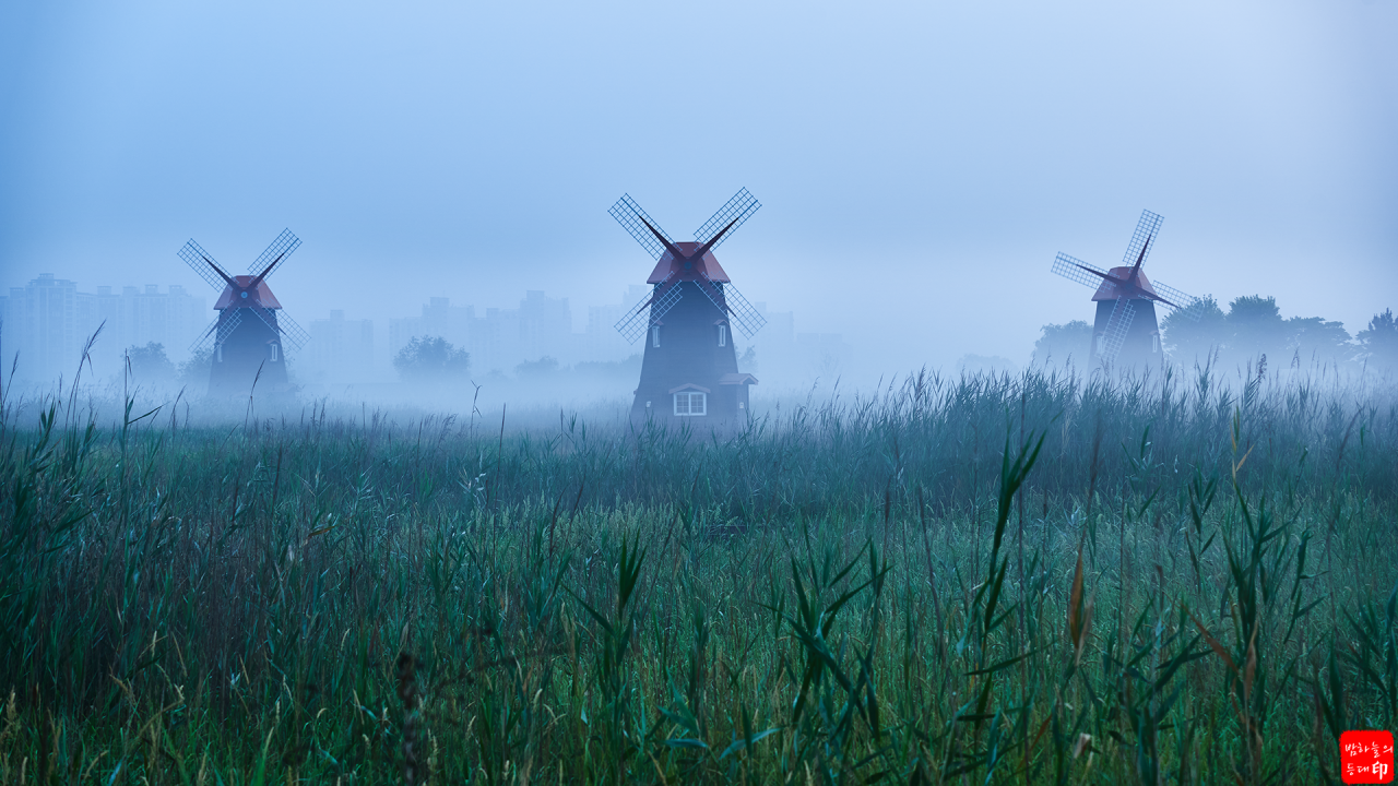 풍차 주위를 다니면서 안개를 담아 보았습니다.