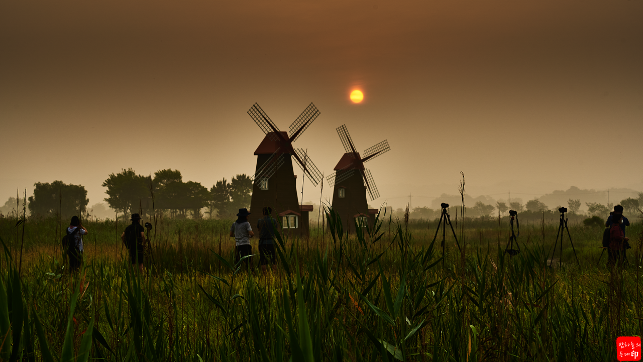 날이 좋아서 일출을 찍을 때는 풍차나 풍차 날개에 해가 걸치는