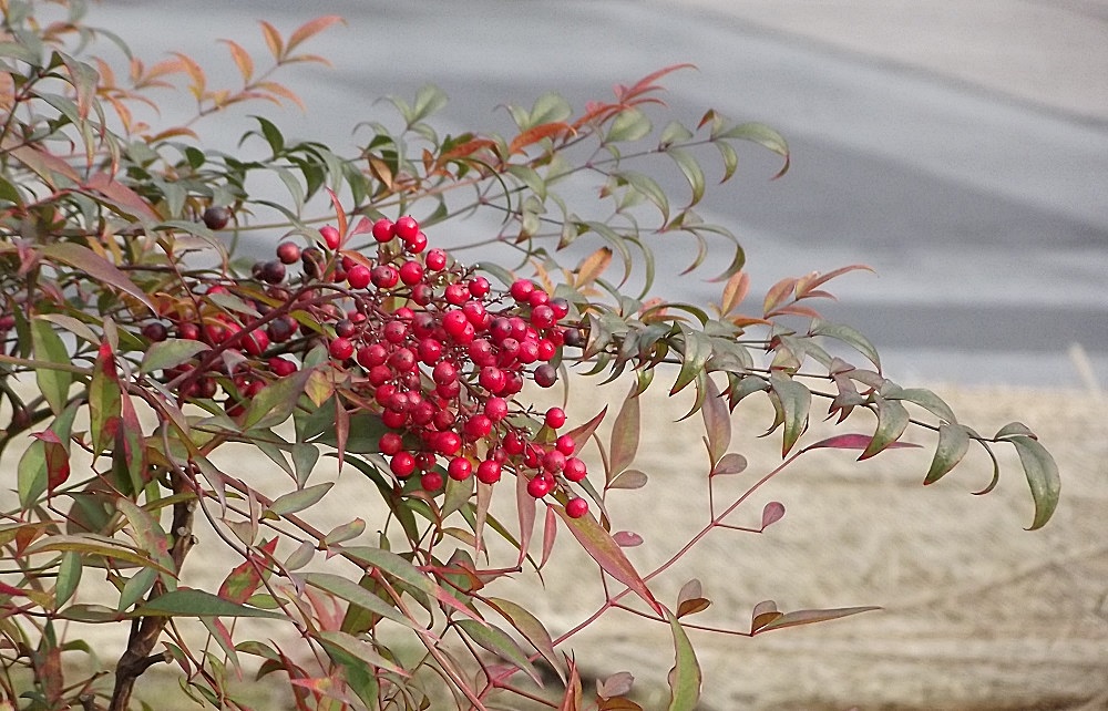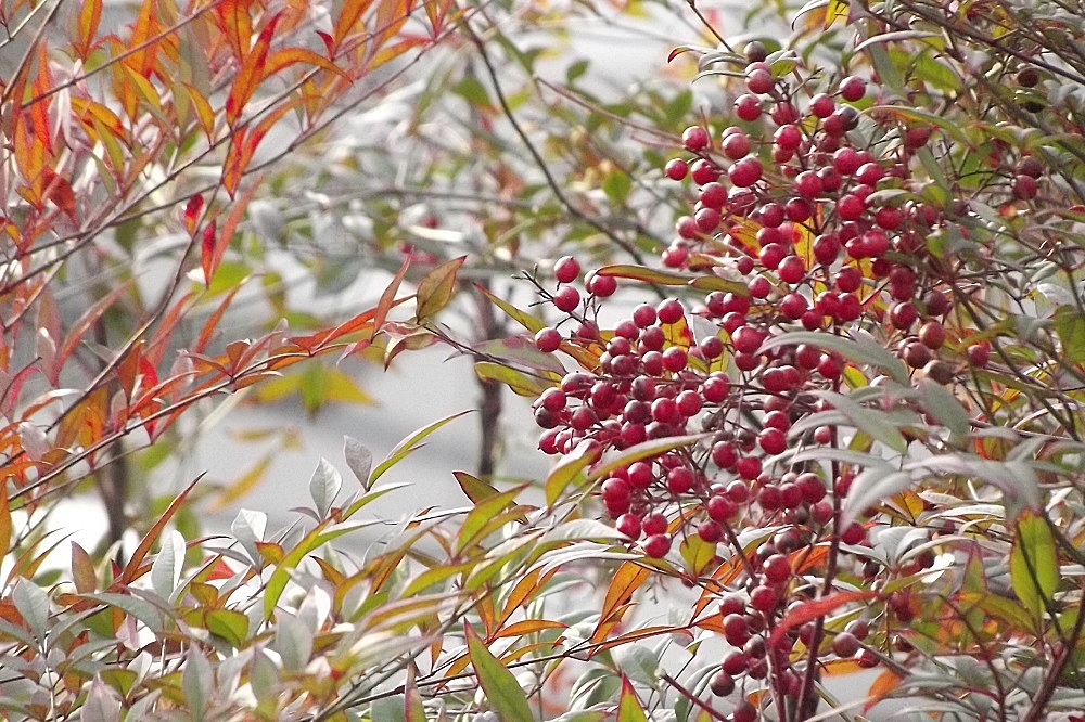 남천나무는 관상용으로 많이 심는지라 도로변에서도 더러 눈에 띕니다.