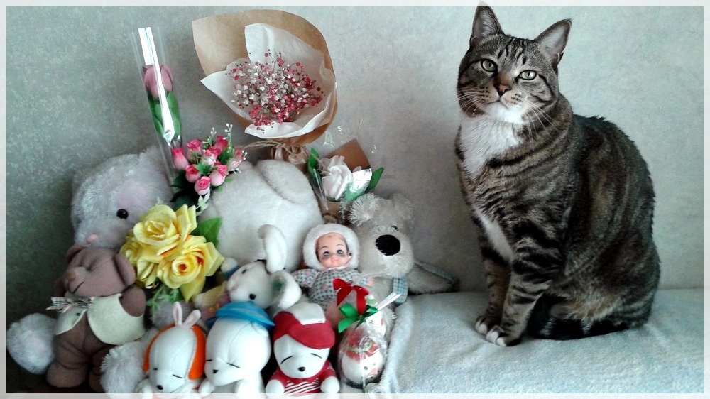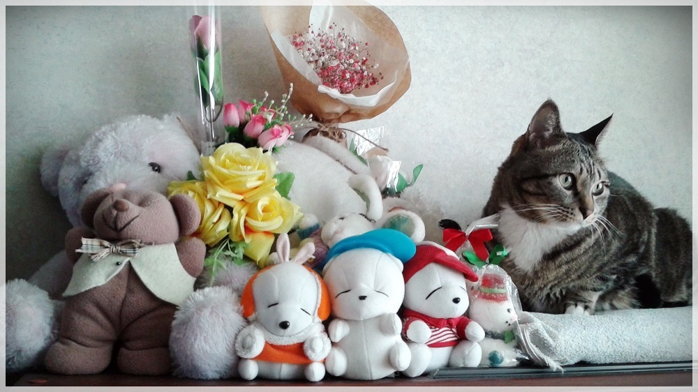 늘 푸르님 고양이가 인형들과 함께