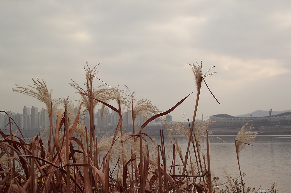 강바람이 하 시려워 못다핀 억새꽃