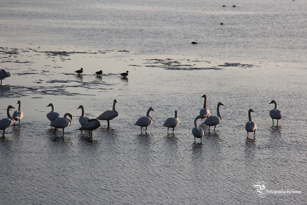 날씨도 쌀쌀하고 저녁무렵이라 그런지 고니들이 꼼짝을하지 않더라고요..