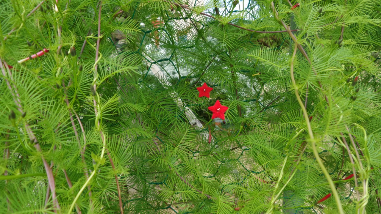 붉은 별,유홍초 두송이가 빛나고 있네요.참 예쁜 꽃...