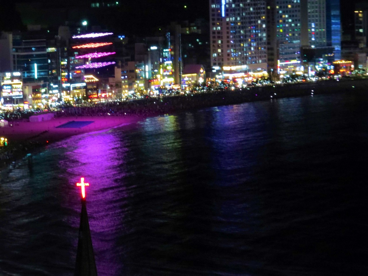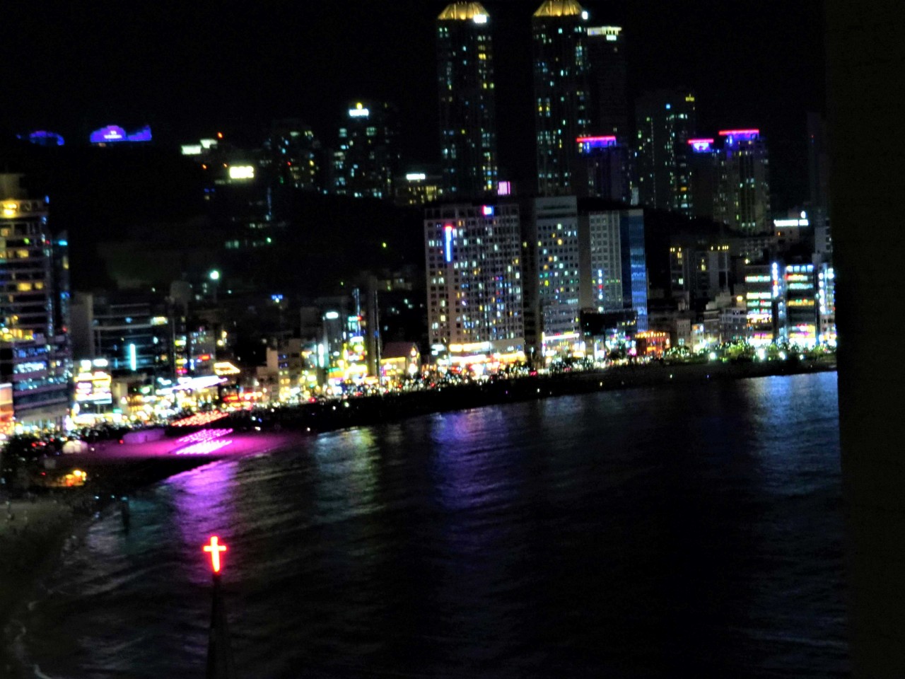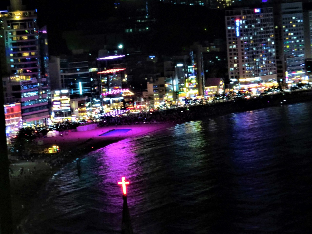건물의 불빛에 비추는 해변의 모습도 아름답습니다....