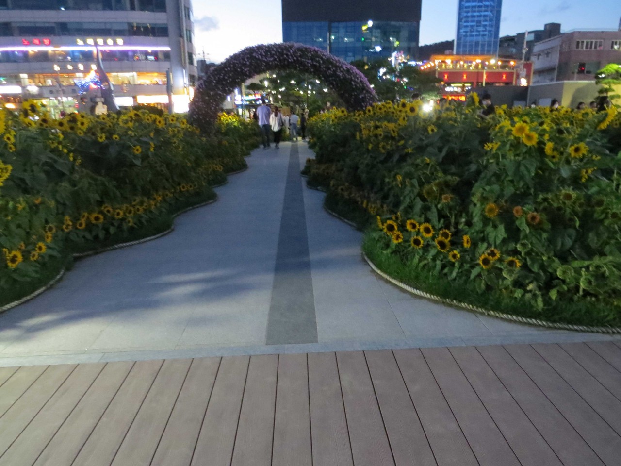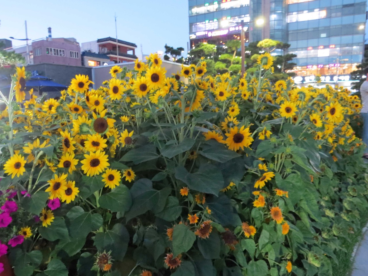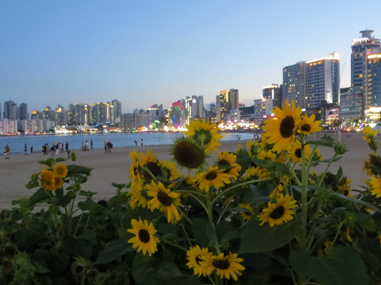 해변에 해바라기 꽃을 꾸민 정성이 보이는군요.