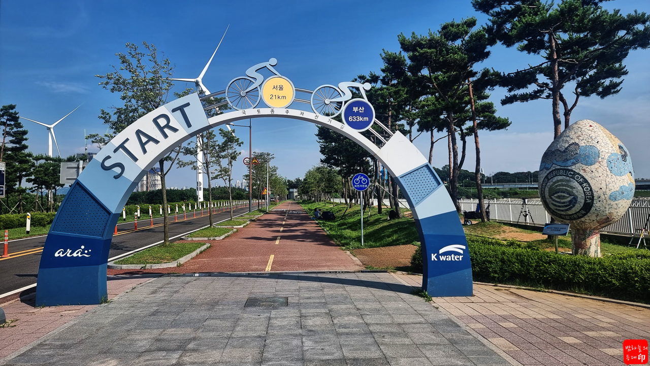 정서진은 오른 편으로 아라뱃길 유람선 터미널이 있으니,