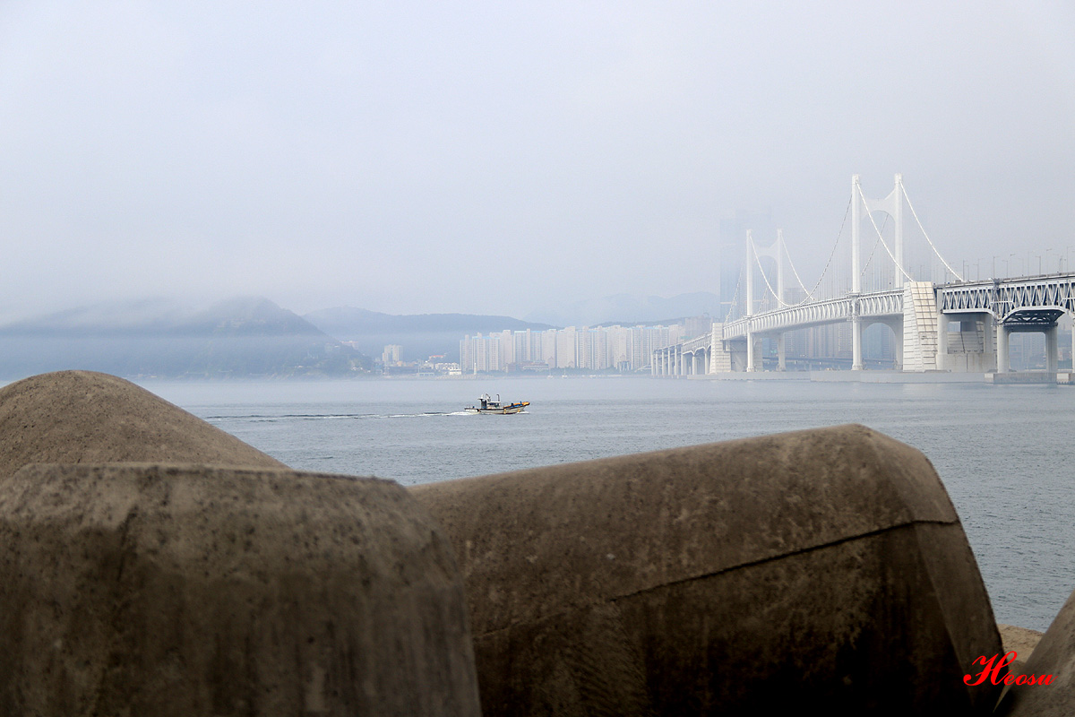 해무가 내린 해운대...