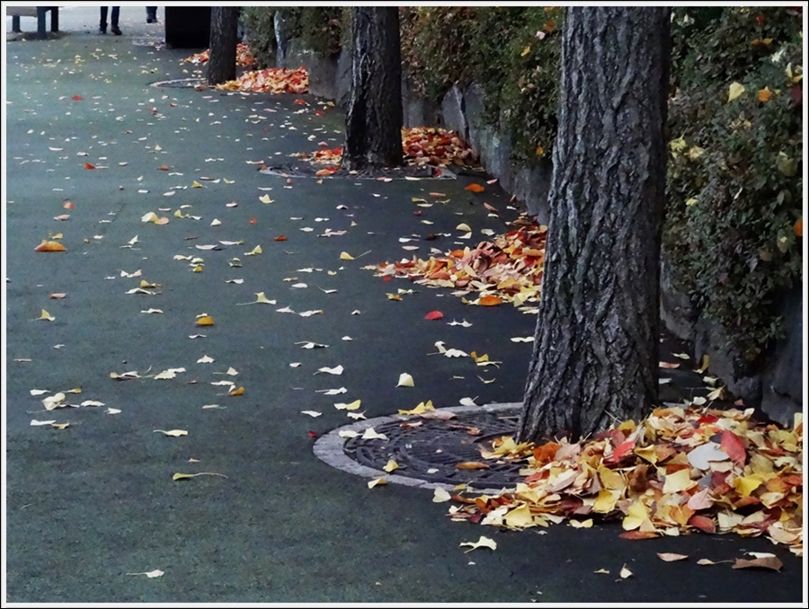 비온 후 낙엽이 우수수 떨어졌군요