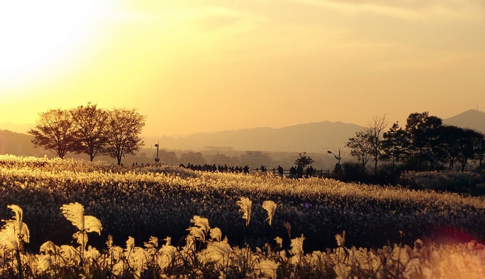 끝없이 펼쳐진 억새꽃들이 노을빛 아래서 감상하니 더욱 아름다왔죠.
