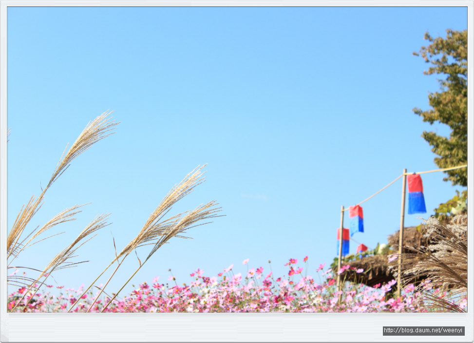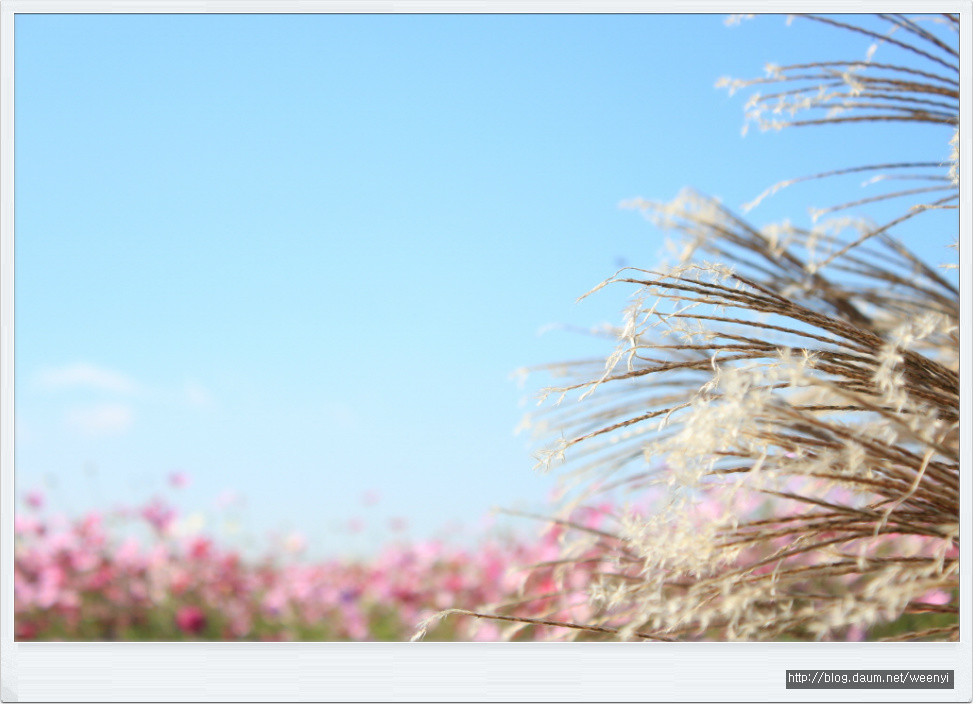그 사이로 연분홍빛 코스모스꽃이 어울어져