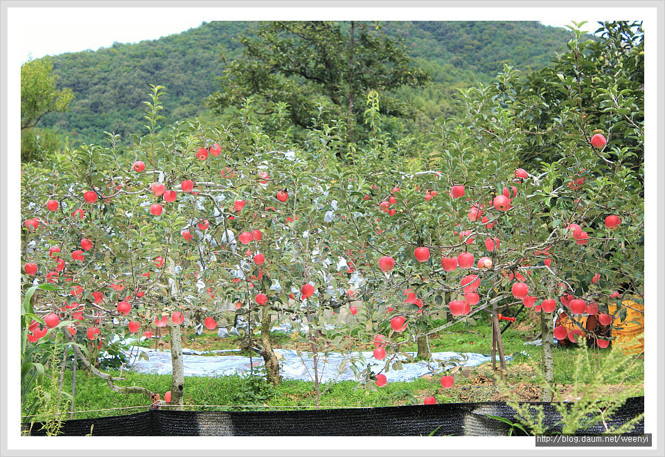 한적한 시골풍경에 사과나무도 주렁 주렁 밤나무도 밤이 주렁주렁요
