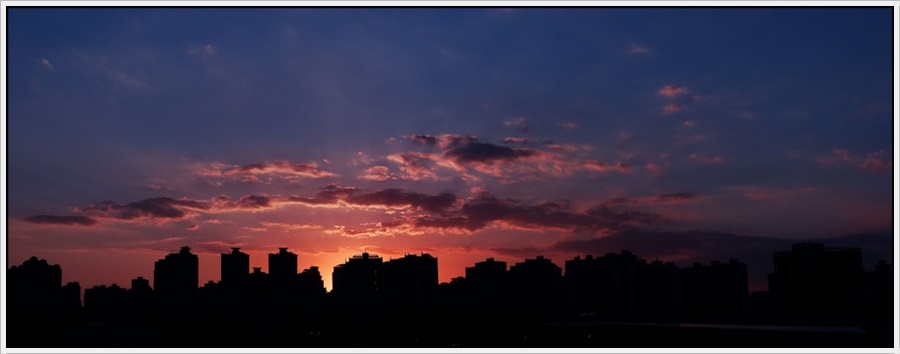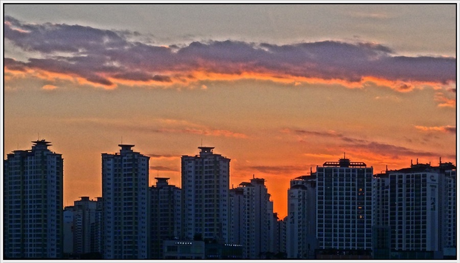 삭막한 도시 빌딩 뒤로 붉은 노을이 참 예쁘기 그지없습니다..