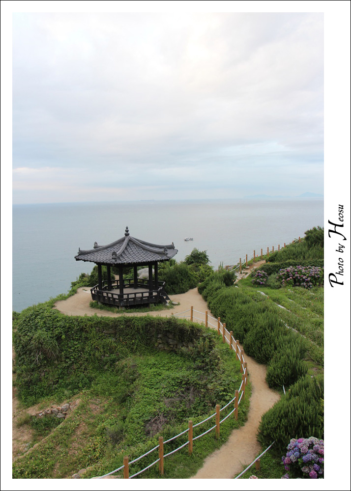 정자를 돌아나가는 한줄기 바람, 짭쪼롭한 갯내음에 수국도 그 향기를 잃어 버리고,