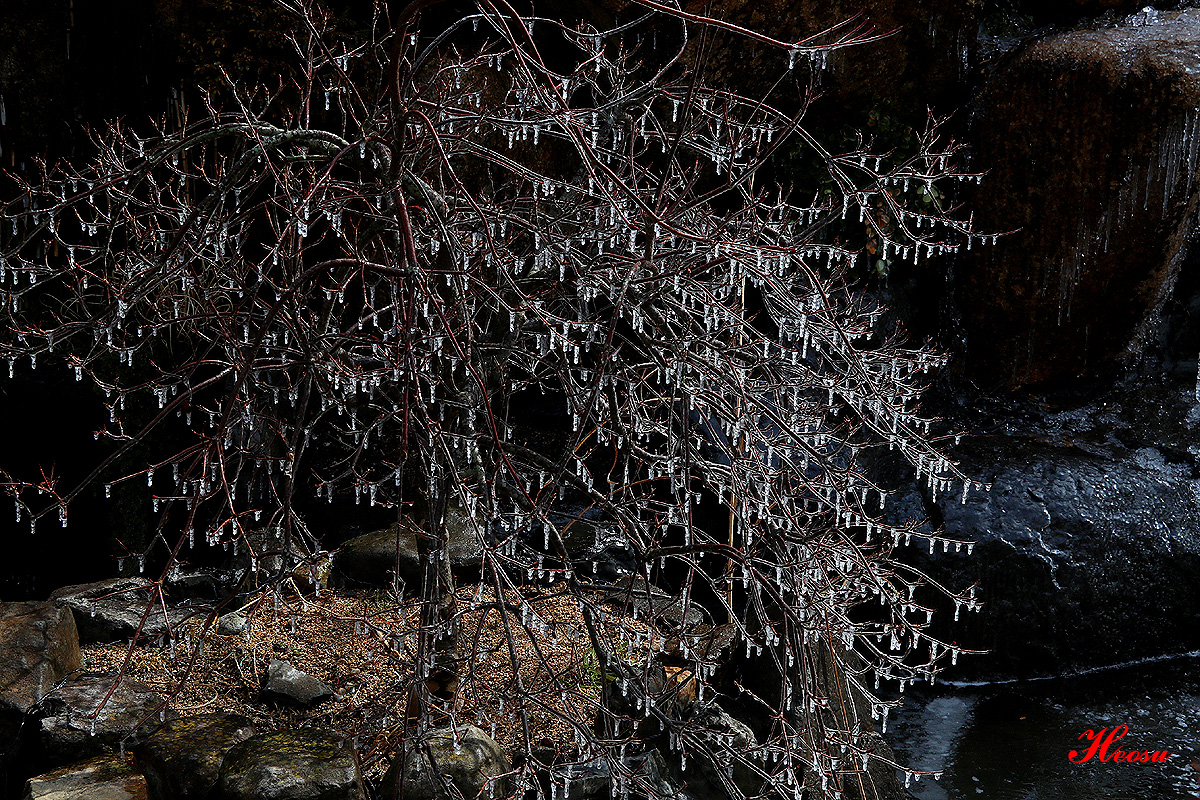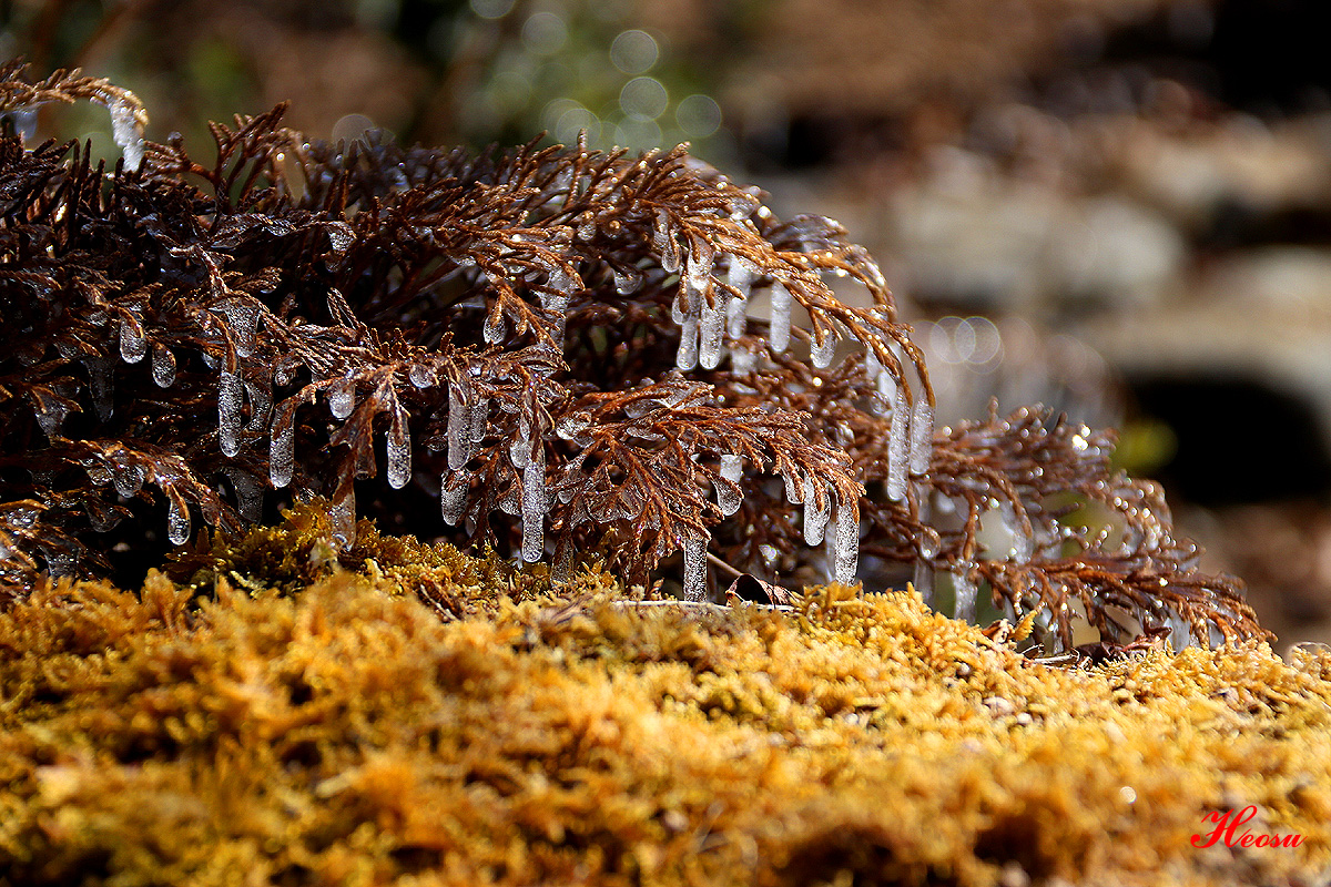 작은 폭포가 있고 분수가 있어서 물방울이 튀겨 만들어낸 자연 작품이랍니다..