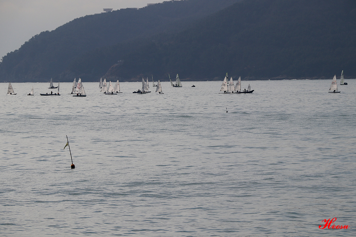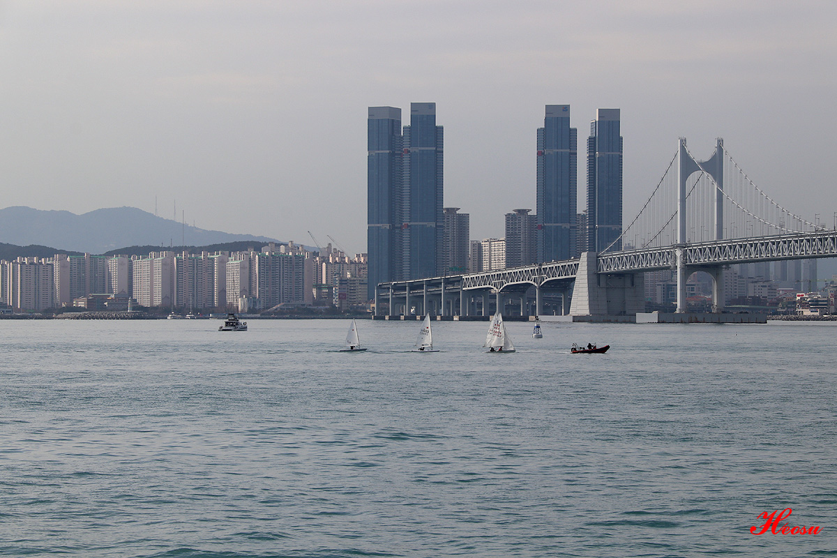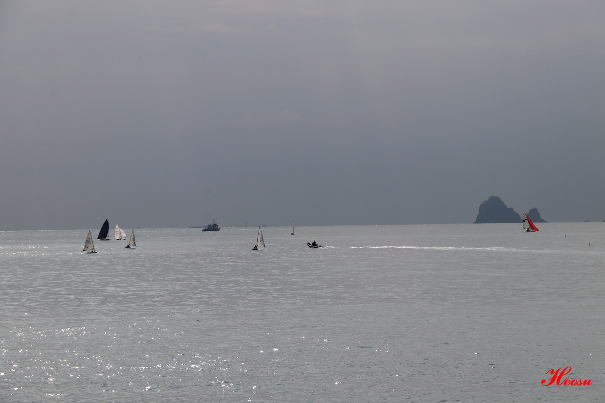 요트 너머 보이는 곳이 오륙도 인지 모르겠습니다...