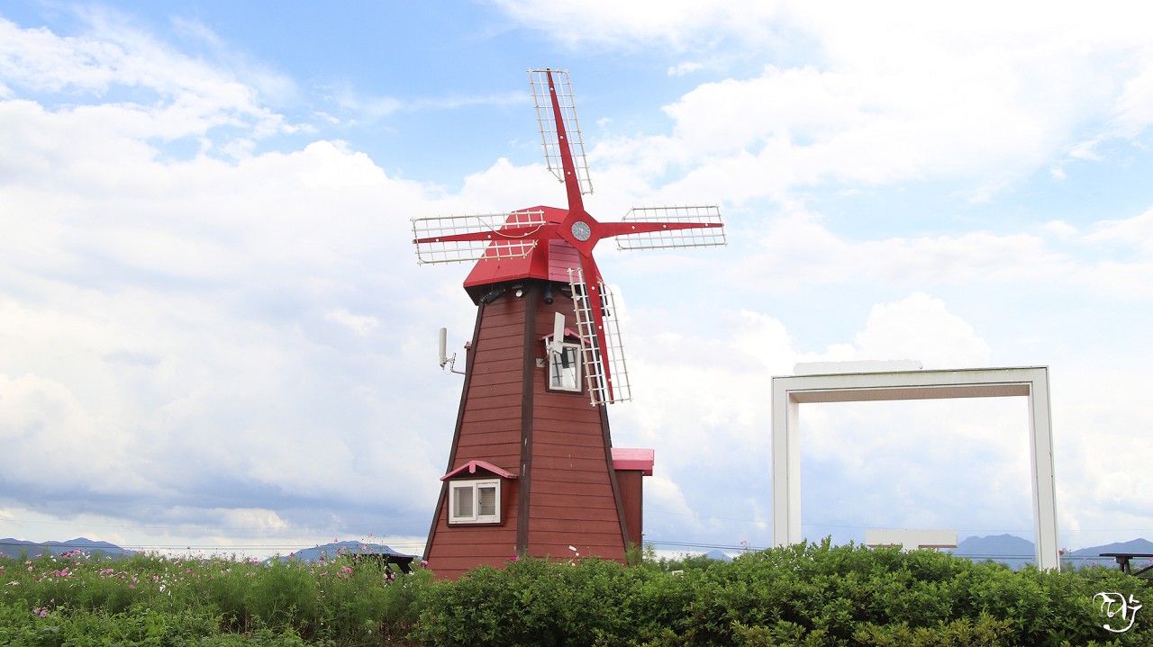풍차가 있는 둑방길이라 낭만이 느껴지네요.