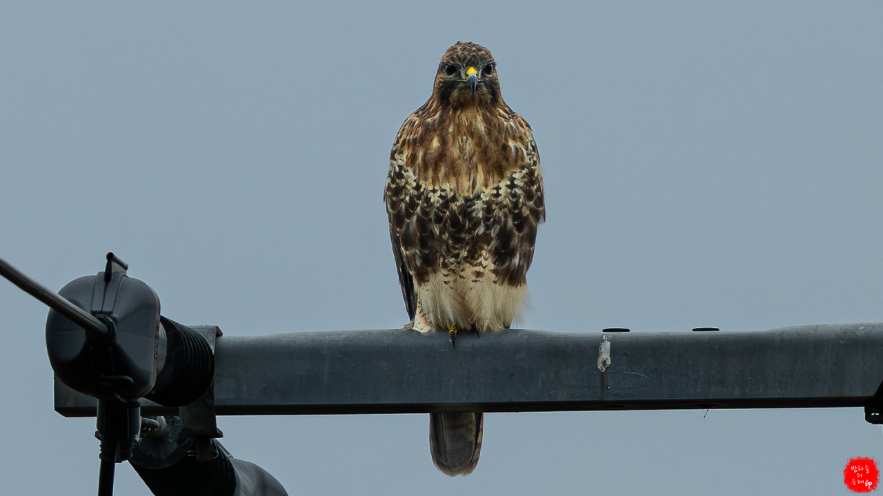 비를 맞았는지 말똥가리의 모습이 초라해 보이지만