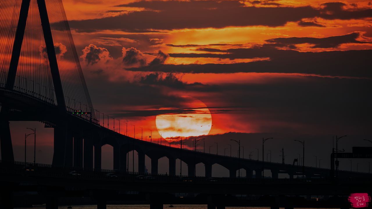 붉은 노을과 야경 아름다운 한 폭의 화폭