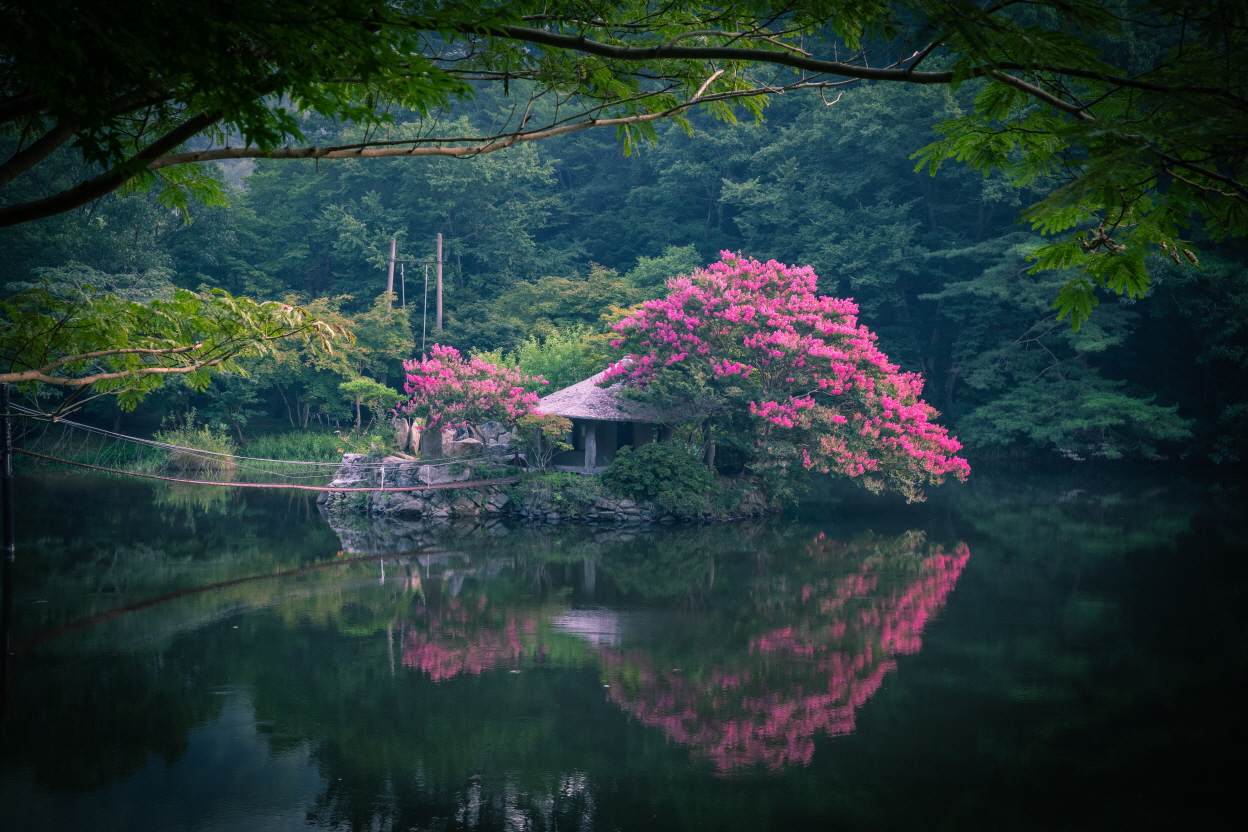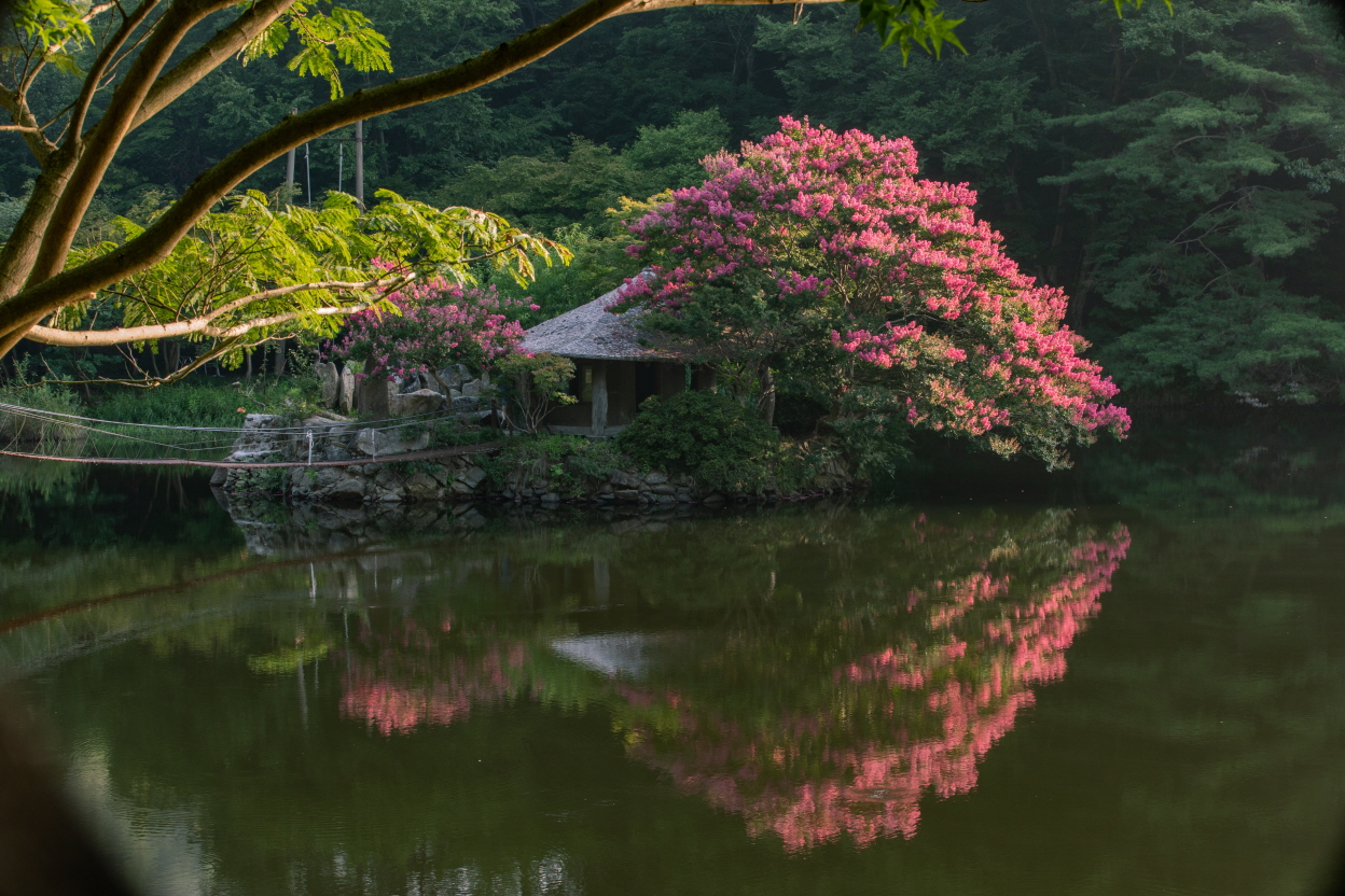 물가의비친 저 배롱나무꽃이 선명하게 비치네요